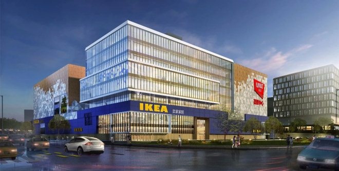 宜家全球較大投資項目薈聚中心上海臨空項目位于福泉路西側、協(xié)和路東側、金鐘路北側、北翟路南側,擬建1幢地上8層、地下4層的綜合商辦體。總建筑面積約43.7萬平方米,其中:地上建筑面積約17.9萬平方米,